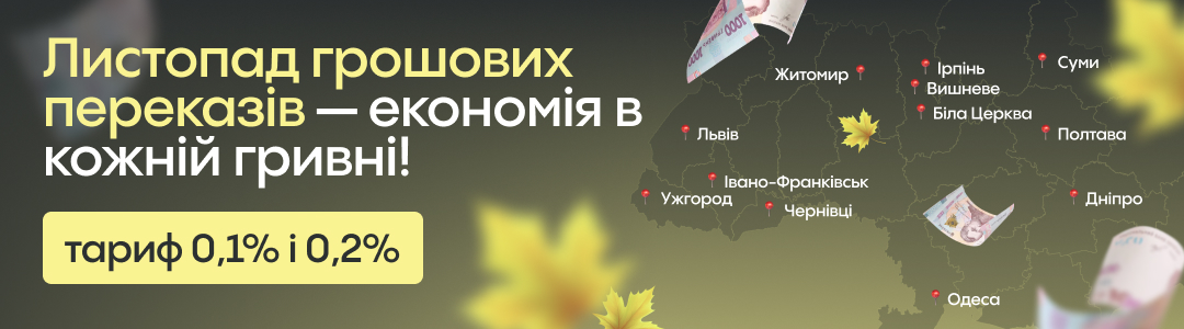 Місяць щедрий на вигоду - шукайте своє місто у списку і отримайте найнижчий тариф на переказ готівки по Україні!